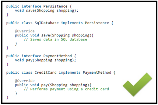 Imaginemos que tenemos una cesta de compra que lo que hace es almacenar la información y llamar al método de pago para que ejecute la operación. Nuestro código sería algo así: