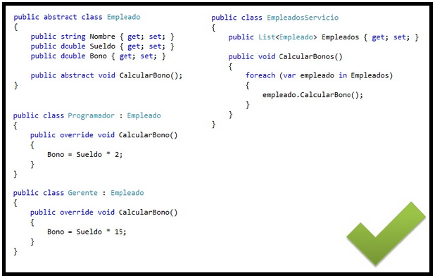 pero cada uno implementará ese método de acuerdo al sueldo que reciba. En ultimas, se ha aplicado el concepto de polimorfismo de subtipos.