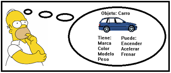 En este ejemplo, se tiene la abstracción de que el objeto Carro tiene diferentes propiedades o características tal como la marca, el color, el modelo,