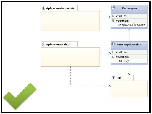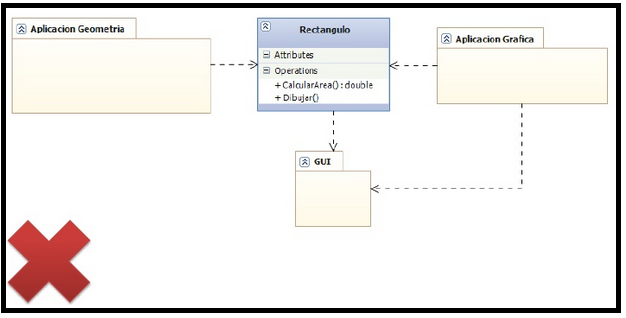 Se tiene la clase Rectángulo que tiene las siguientes responsabilidades: calcular el area y dibujar, como se puede observar son responsabilidades