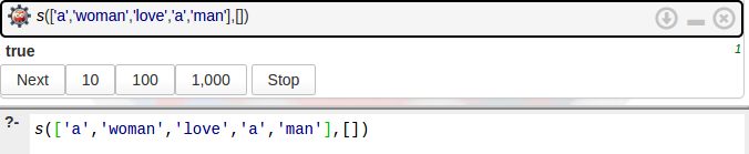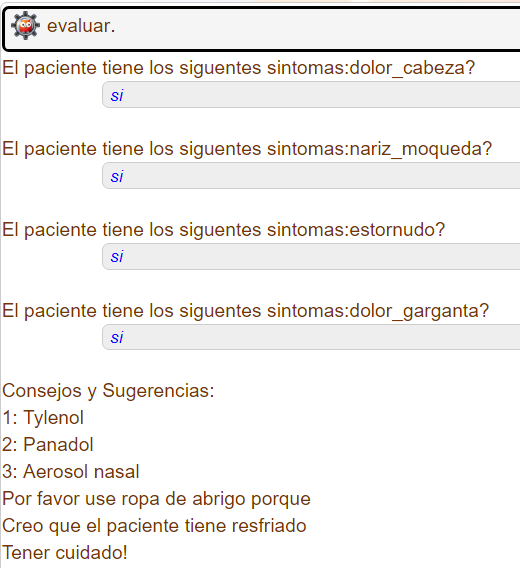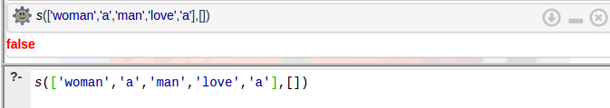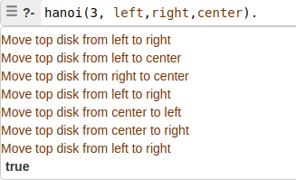 Se puede observar que la respuesta a la pregunta fue true, ya que la consulta pudo ser unificada con el Hecho 6 de la base de conocimiento.