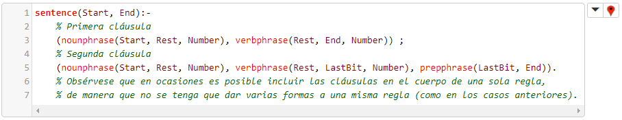 La quinta regla, para la verificación de oraciones, es sentence(...), y tiene varias cláusulas: