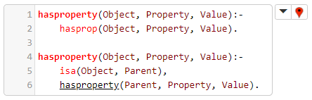 La anterior celda de código ya definía ambas cláusulas de la regla hasproperty(Object, Property, Value). En lo que sigue se presentará otras reglas de inferencia, a partir de las que se construirá incrementalmente el analizador sintáctico.