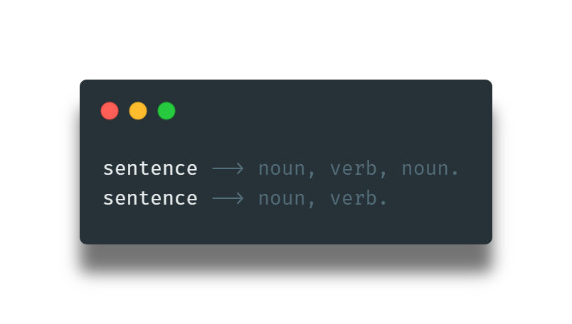 - La segunda estipula que una frase nominal seguida por una frase verbal, seguida por una frase preposicional, es una oración.