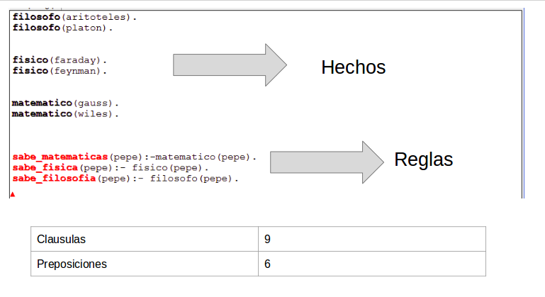 - Clausulas: donde se escriben los hechos y las reglas que conocemos del dominio.