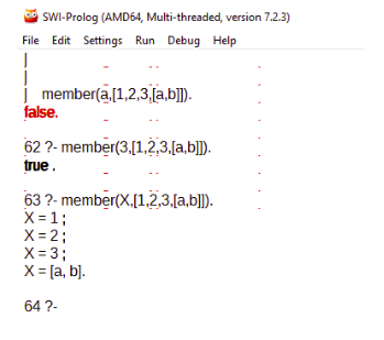 Cuando en una consulta se tiene más de una alternativa Prolog devuelve la primera ocurrencia, se obtienen las demás insertando el token punto y coma. Las respuestas a una consulta puede ser true, false o los elementos que pueden tomar una variable definida. Un ejemplo simple de una consulta puede ser:
